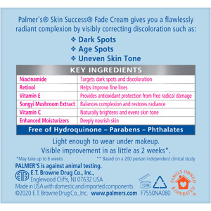 Delivery in 5-7 working days Palmer's Skin Success Fade Cream gives you a flawlessly radiant complexion by effectively correcting discoloration such as dark spots, age spots and uneven skin tone.