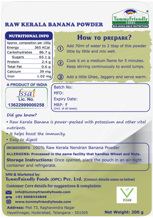 TFF-KeralaBanana-Cmb2-400TummyFriendly Foods Natural Raw Kerala Banana Powder | Raw Nendran Banana Powder | No Chemicals Cereal (400 g, Pack of 2)